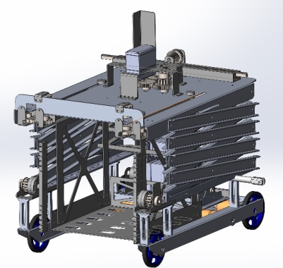 I have participated in VEX robotics throughout high school with the Battle Creek Area Math and Science Center team, and in 2016-2017 I was the captain. The robot that year consisted of a normal 4 wheel base, a 4 bar lift, and a large claw-type gripper to manipulate and lift game elements. The goal of the game that year was to take these large, oddly shaped stars and squishy cubes and fling them over a fence to the opponents’ side of the mat. I used Inventor to make diagrams and sketches of the robot in an attempt to be able to readily delegate work to other team members.