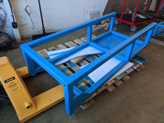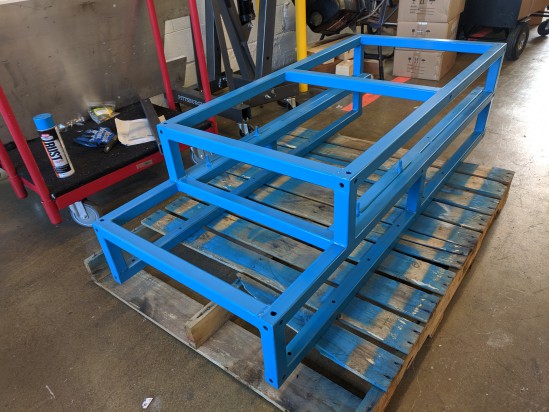 These are the bottom (left) and top (right) frames for the structure of the dynomometer. Due to several complications with our local supply chain I ended up doing all of the welding and painting for the frame (which was actually a lot of fun).