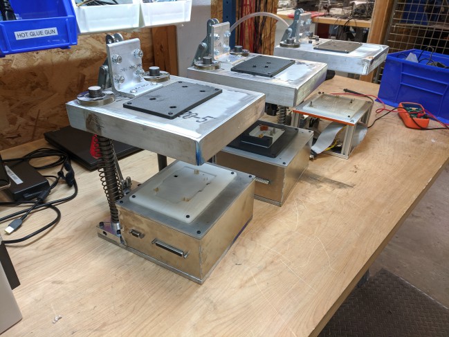 Finally, my last major project was building up a series of bed of nails fixtures for our various PCBs. I tried to revamp the previous design process to completely streamline the design and assembly process. Instead of taking a full 3-5 days of work to CAD, assembly, and troubleshoot the BONs it can now be done in as little as a day. The fixture itself is also vastly more robust and easy to use than previous versions.