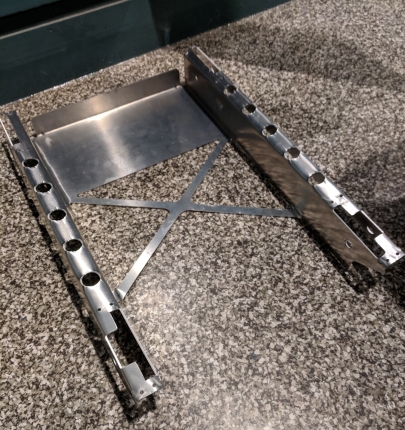 I also had a few cracks at making a proper chassis. The first attempt I failed to take into account the fact that thin sheet aluminum distorts really easily when bent, rendering it completely dimensionally inaccurate. I finally landed on a good 3 part chassis, a few iterations in.