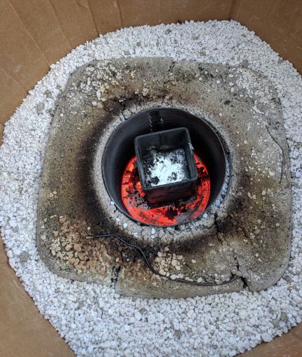 In my quest to make a cheaper (propane is not cheap when you have no income) and easier to use (less than 1 hour set up time) furnace, I experimented with resistance forges. I basically stuck an electric stove’s heater with a steel shell into a pile of perlite and contained the whole thing in a cardboard box. It’s honestly amazing that the perlite was a good enough insulator to keep the box from catching on fire, even though the chamber reached somewhere around 1600F