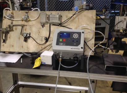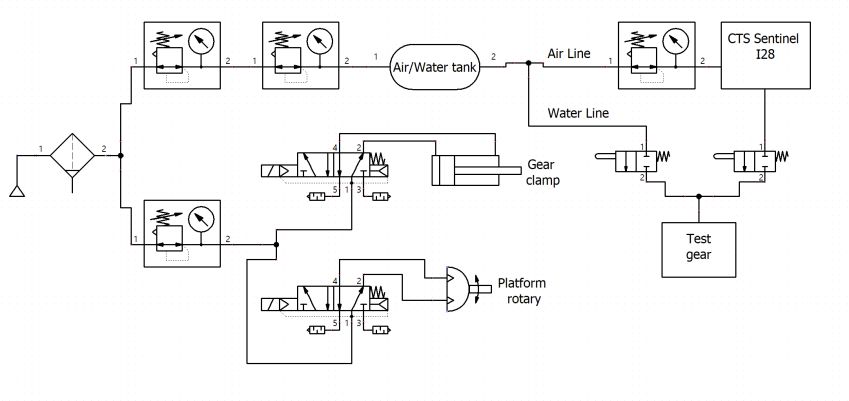 With the supervision of one of the lead engineers I made an apparatus that would allow me to take factory air, stabilize it to some degree, run it through a machine to measure its flow rate, and lead all of that to a clamp that would seal the gear and flow analyzer together. The setup also allowed me to fill the gears up with pressurized water for a fluid loss test.