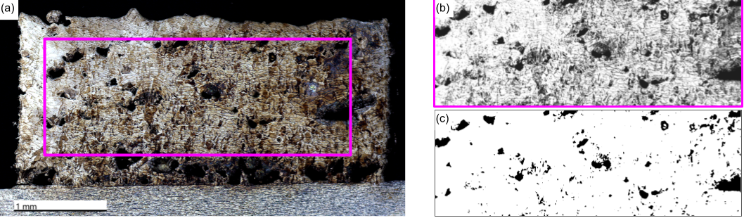 I also worked on narrowing down some set of optimal print parameters for using HAMR2 on 316L Stainless Steel. The first stab at a parameter sweep I took was done utilizing normalized enthalpy values for the material and parameters. From this sample set I worked with Reimar Weissbach to section, polish, etch, and image the samples; and from these images I did some processing to come up with a proxy measurement for porosity.