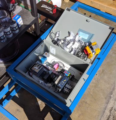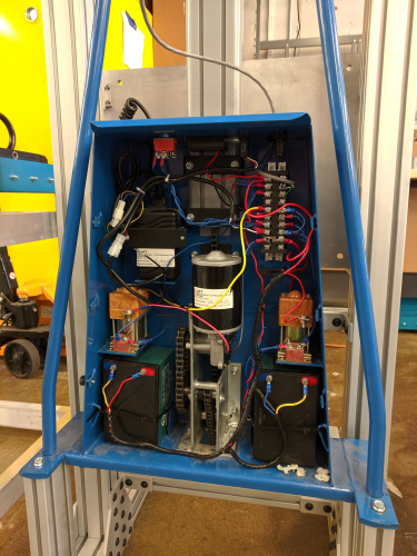 The plan was to also have the sides and center of the cart filled with electronically locked tool boxes. Unfortunately, the lead time on these tool boxes meant that I could not finish the project in time to go back to school. The touch pad on the center post of the cart was supposed to control power to all of the machines and the locks on all of the tool storage locations so that none of the more curious line workers would get curious and lose a finger or walk off with a new angle grinder.