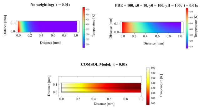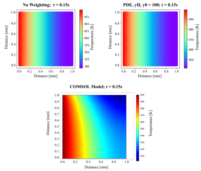 I setup a parallel model in COMSOL for comparison and the results looked less than stellar. It did not appear that I could fudge the loss weights enough to coerce the network output to converge onto the COMSOL model.