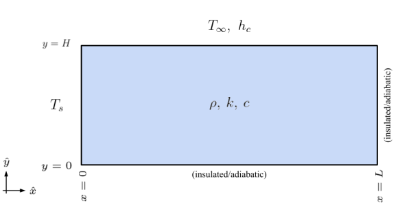 My next step was to make a 2D model, so I just took another semi-infinite slab with a convective heat transfer boundary condition on the top side.
