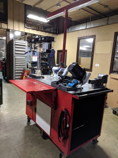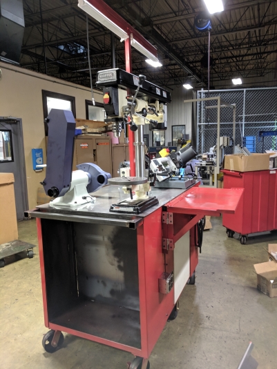 I helped design the cart and presented the concept to the other engineers in the department with a fellow intern (Joanna Robinson). Another intern (Michael Campbell) helped me with welding the frame while I made more of the pieces/components. Aside from that I fabricated, machined, welded, and wired the rest of the cart. It should save the engineers doing the line installations tens of hours per week collectively just by having all of the equipment and parts in one place. The cart had a bunch of fanciful features, including a fold-out work surface, extension ports, overhead lights, a drill press, a vice, and a grinder.