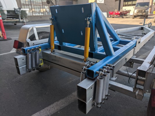 I also got the chance to setup PWC's first round of log strike testing on their latest line of outboards. Relating the entire test plan here would probably violate my NDA, but to meet the company's budget we utilized a modified boat trailer to slam a couple of test outboards into a massive concrete block at pretty decent speeds. The trailer itself was modified in an attempt to allow the outboard's dynamics to mimic that of a boat hitting a submerged object and/or make the rig more compliant. I also got to further hone my welding with all of the modifications to the trailer.