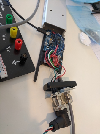 I also made a little fixture to mechanically test the throttle assembly by repeatedly smashing some of the buttons, actuating and moving the lever arm about the throttle's neutral detent, and by rotating the arm back and forth.
