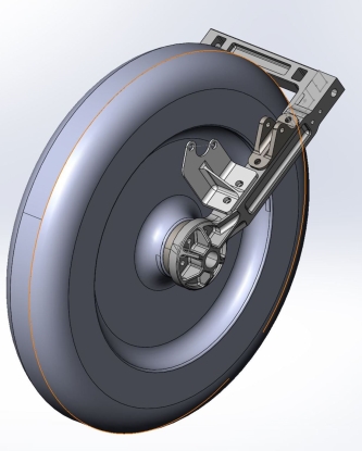 I did a lot of work in designing the parking brake (to the left), which is basically just putting a lever arm and a locking/release mechanism on a hydraulic cylinder. I also worked on redesigning some of the geometry for the rear suspension. Originally we planned (and made) our rear suspension's L-arm out of two pieces of steel to be welded together (picture of half of it below).