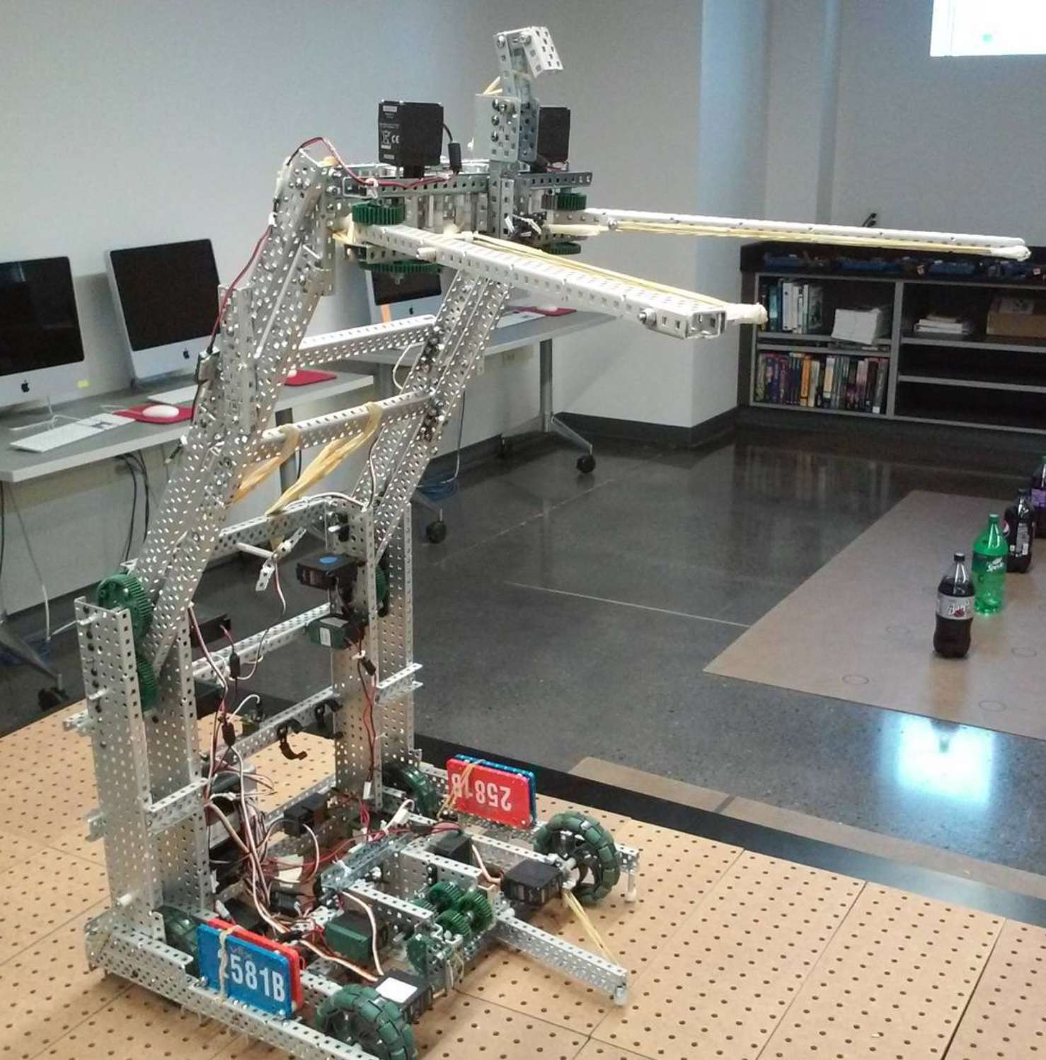 The class projects worked toward a final competition, whereby the teams' robots would have to navigate an obstacle course, pickup some shredded rubber bits, and dump them in a collection bucket. Originally it was intended that all of this would be done autonomously but almost none of the teams were able to work through the software side of things well enough to get full autonomous function.