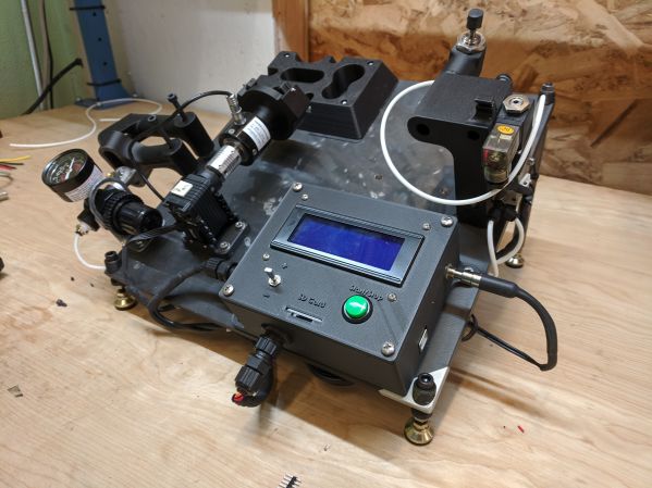 The metering system uses the chamber’s pressure to measure how much fuel and air are present and the ignition system is based on a remote switch and a DC step up module.